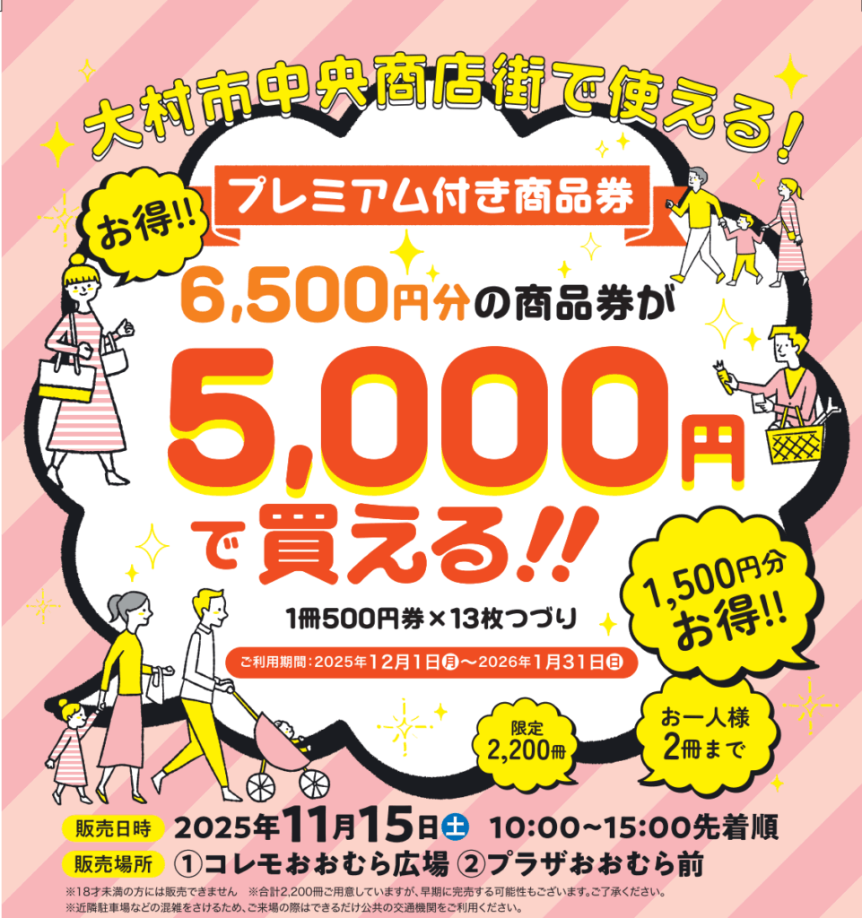 11月15日10時~15時先着順にてプレミアム付き商品券を販売します。